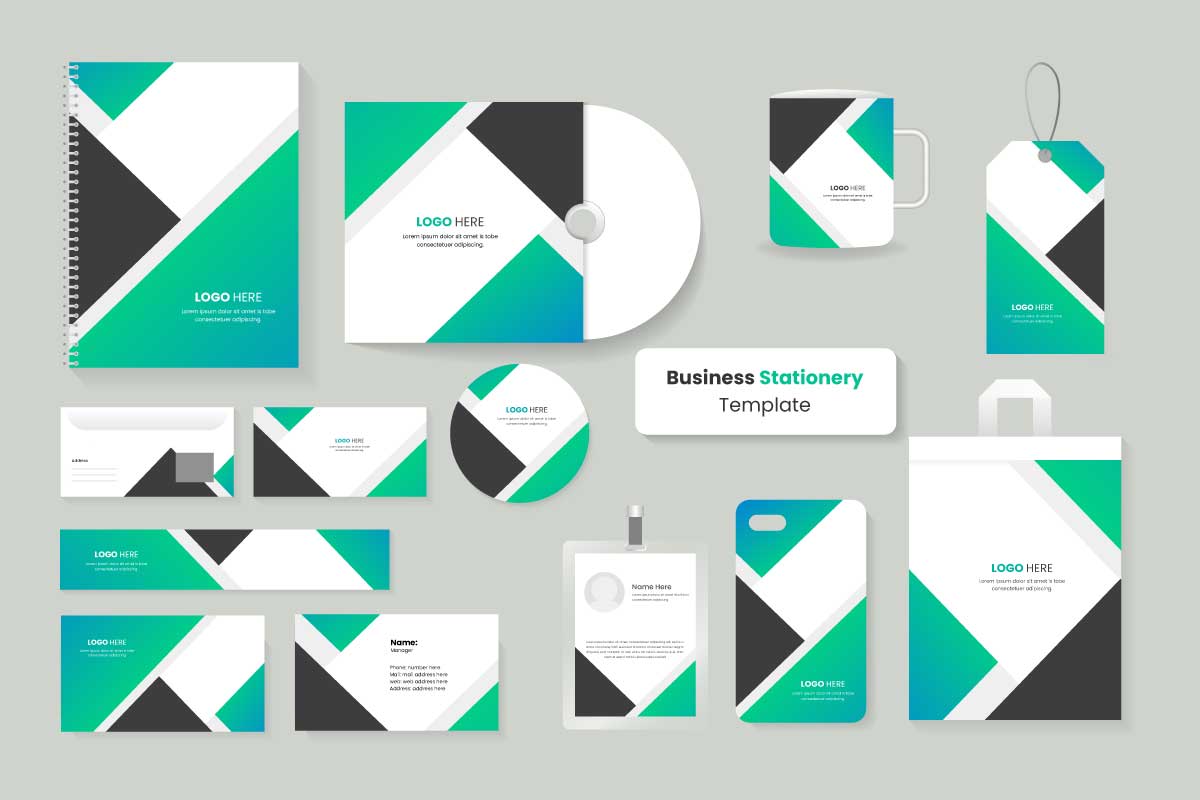 Brand Identity template Set - layered, editable .vector files prepared to showcase your custom design, Creative business stationery collateral set . Big set of business stationery items .