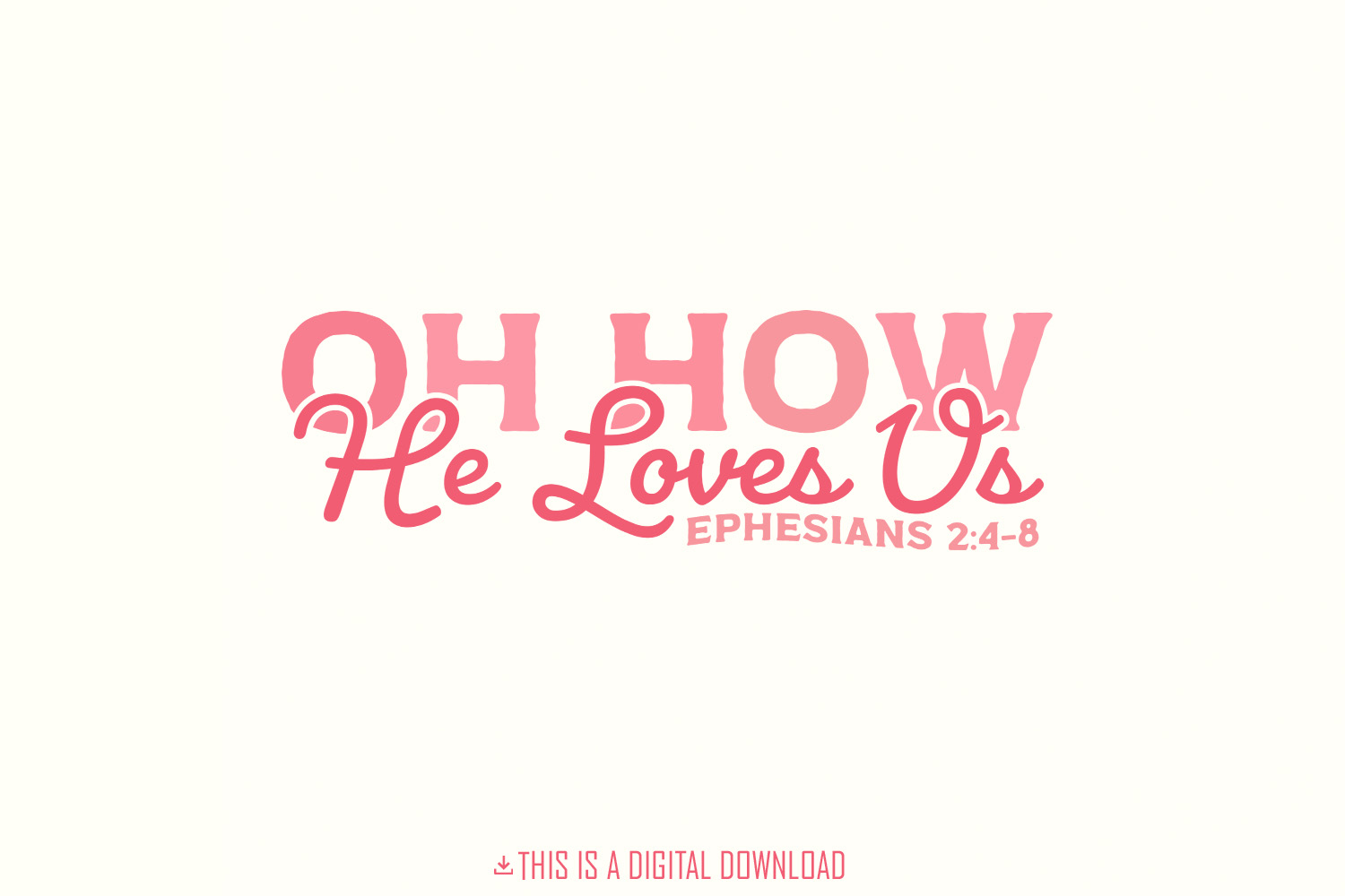 Oh How He Loves Us PNG, Christian Valentine, Bible Verse png, Jesus Valentine PNG, Boho Valentine, Illustration
