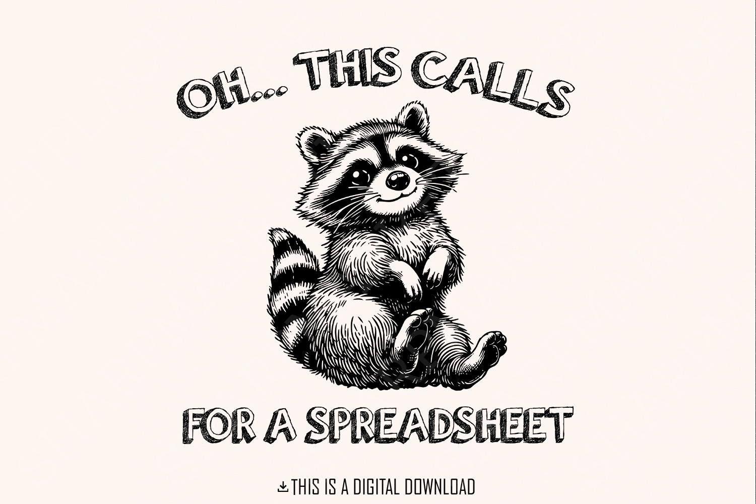 Oh This Calls for a Spreadsheet, Funny Raccoon PNG, Trash Panda png, Office Humor, Funny Racoon Illustration