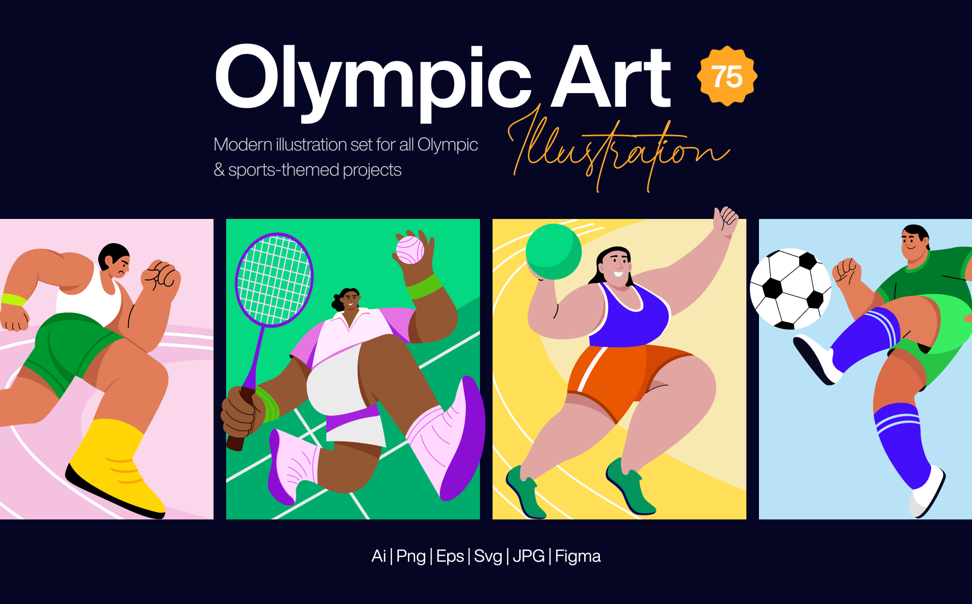 Celebrate the energy, passion, and spirit of the Olympics with this dynamic Olympic Illustration Art Set! Featuring beautifully crafted illustrations of iconic symbols like the Olympic torch, medals, stadiums, and exhilarating sports moments, this collection is perfect for bringing your designs to life. Whether you're creating posters, branding, merchandise, or digital content, these illustrations capture the essence of competition and victory. Ideal for designers, marketers, and sports enthusiasts, this set adds a professional and inspiring touch to any project.
