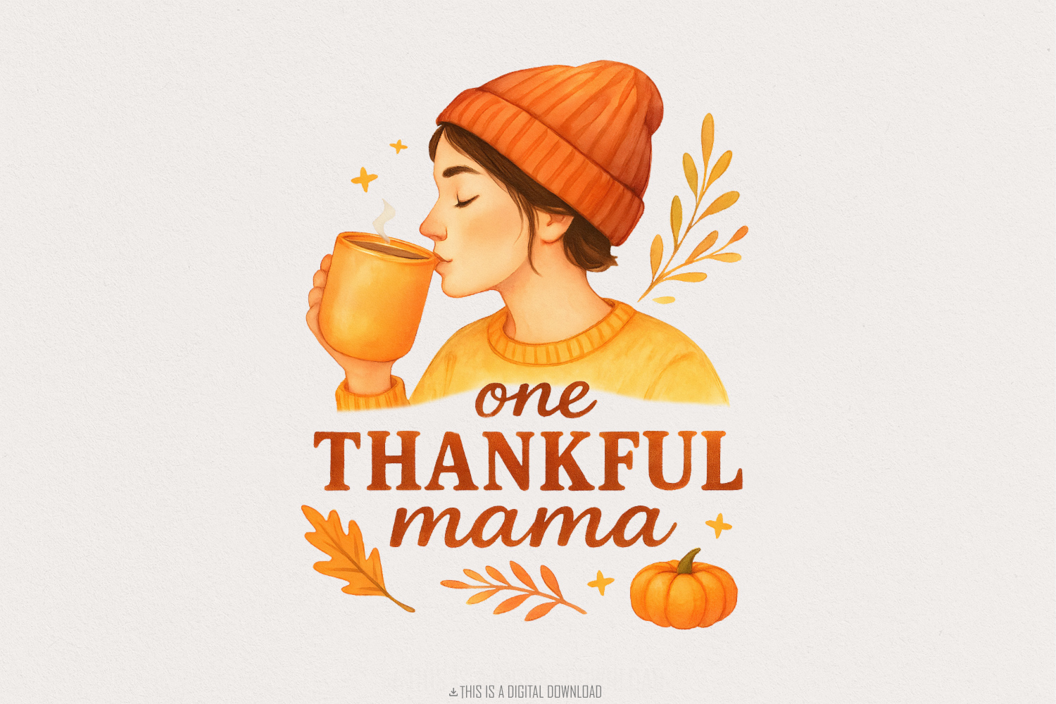 One Thankful Mama PNG Tee, Cute Fall Pumpkin Shirt PNG, Cozy Autumn Coffee Mom T-Shirt, Illustration