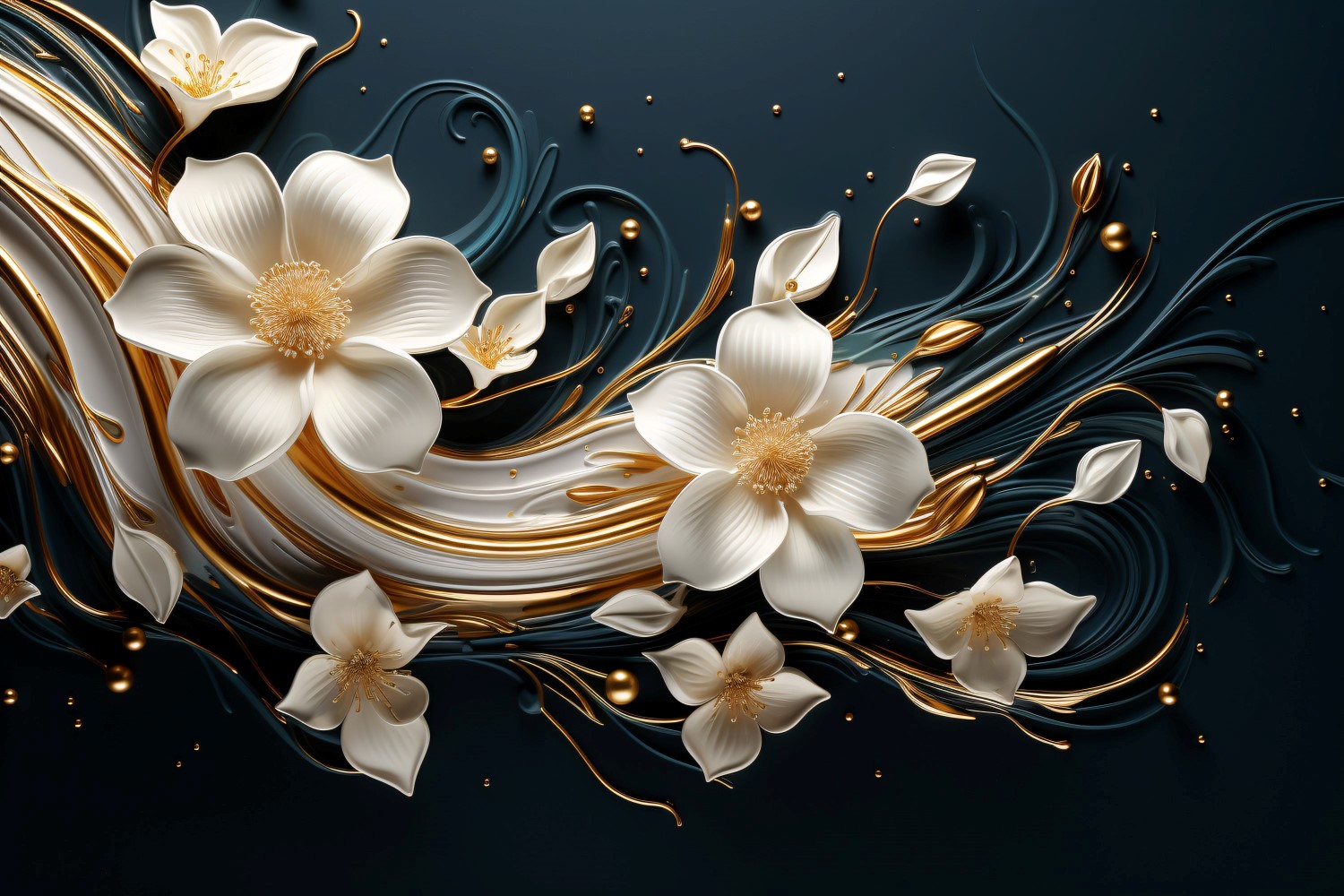 Our ultra-detailed AI-generated wallpapers feature exquisite ornament swirls, leaves, and floral designs crafted from pouring gold graphics. These stunning illustrations are perfect for printing, publishing, and digital media usage, providing a rich, textured aesthetic that enhances any project. Experience the epitome of elegance and detail in your visual creations.