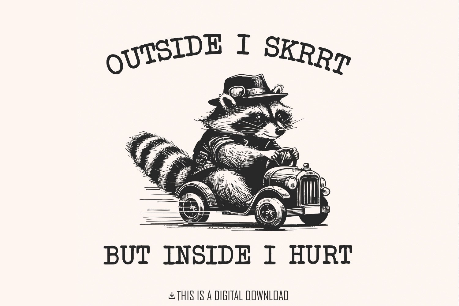 Outside I Skrrt But Inside I Hurt png PNG, Funny Raccoon Shirt Design, Trash Panda T-Shirt, Cute Illustration