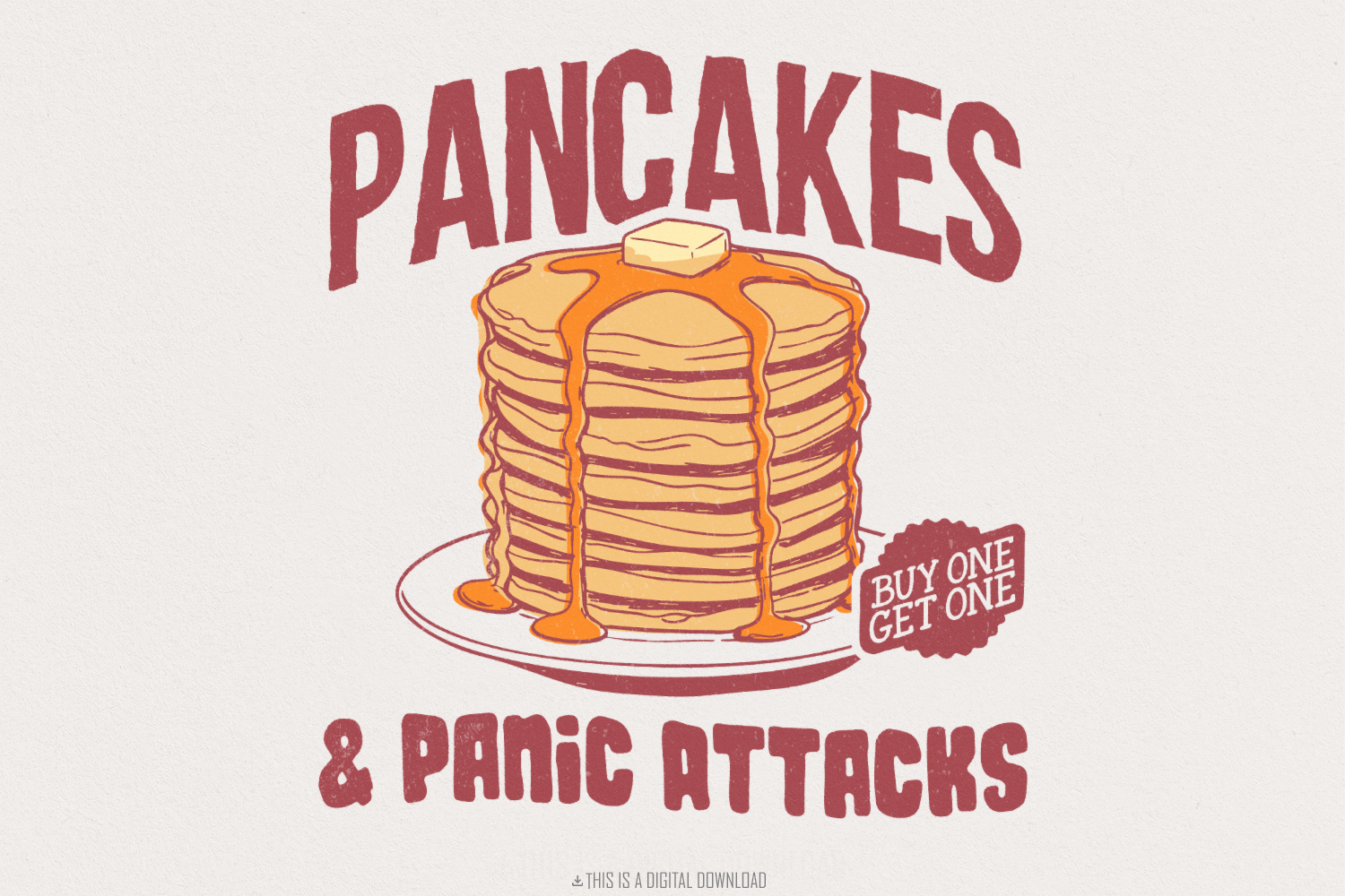 Pancakes and Panic Attacks PNG, Funny Retro Sublimation, Vintage Style T-Shirt Design, Mental Illustration