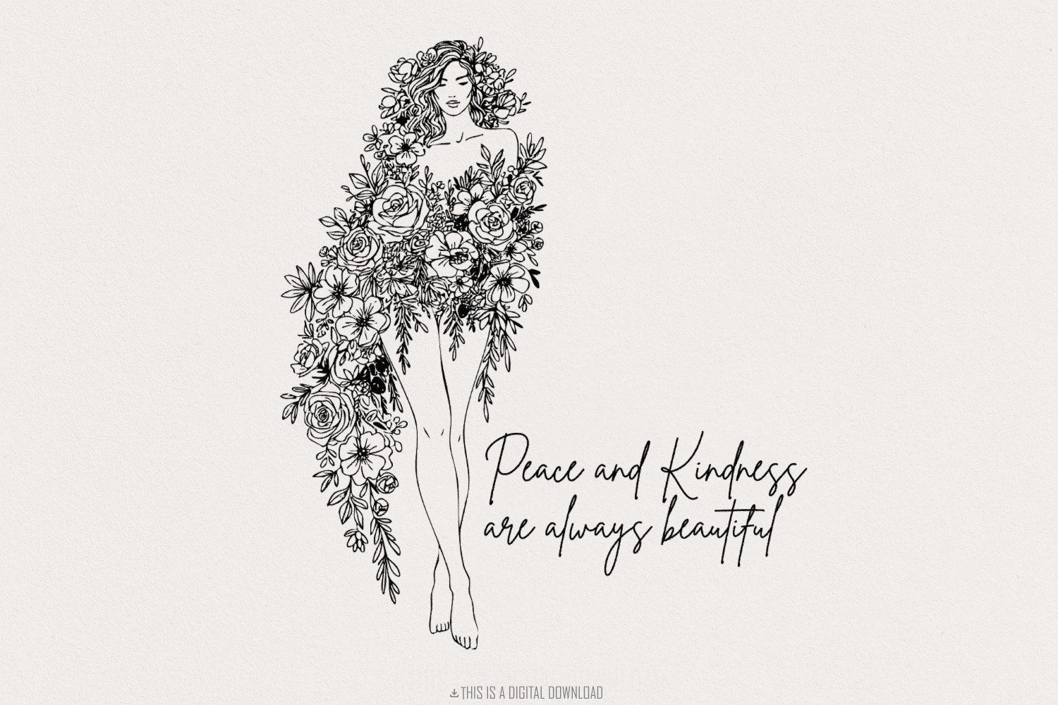 Peace and Kindness PNG, floral png, boho flower png, flower sublimation, retro daisy png, Illustration