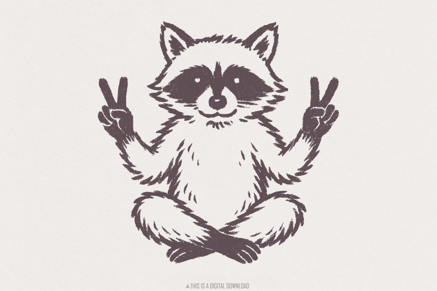 Peaceful Raccoon PNG, Meditating Animal Clipart, Zen Meditation Yoga, Cute Raccoon Digital Download, Peace Sign PNG, Retro Hippie Animal Art