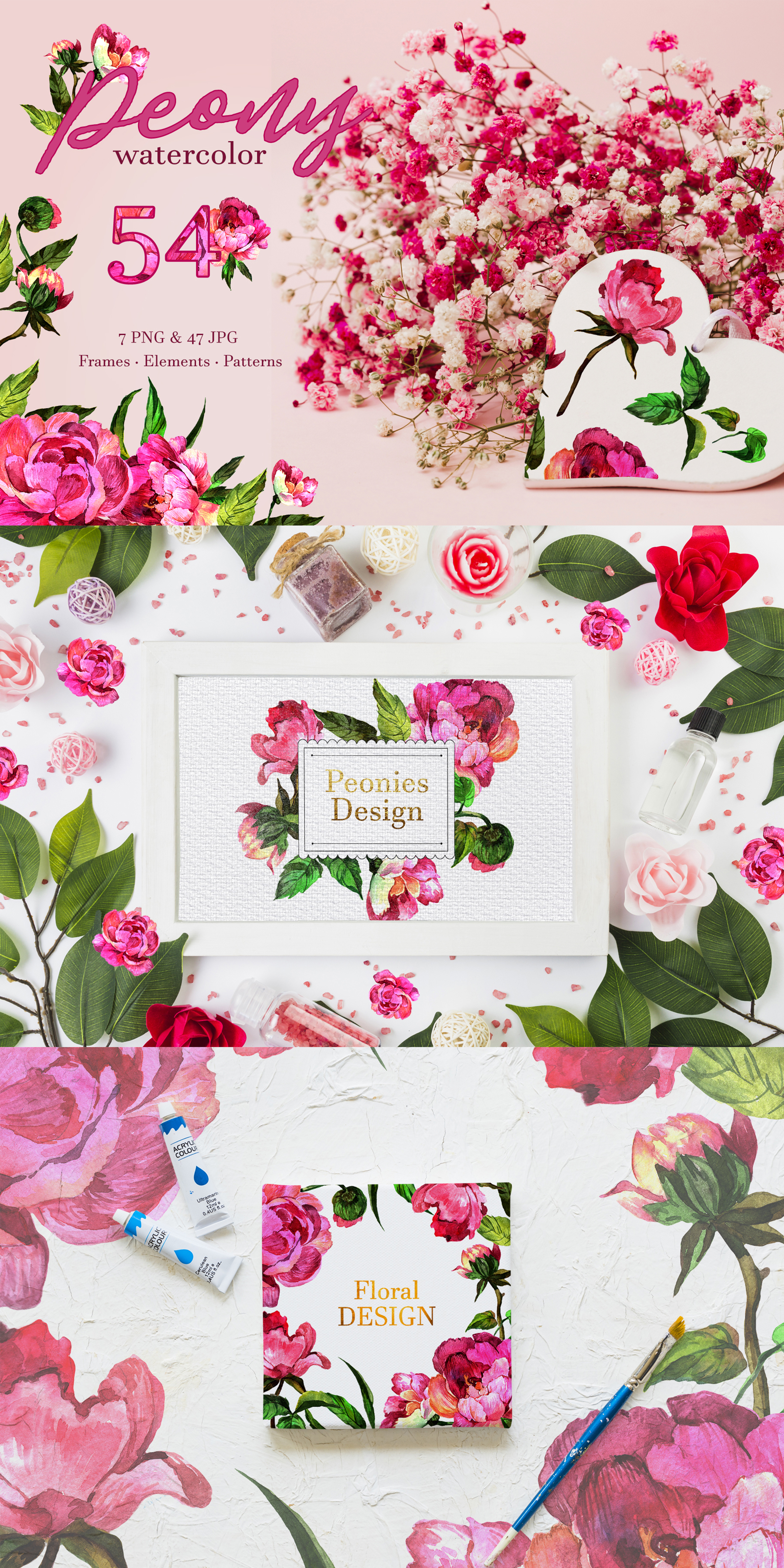 Peony Watercolor pngclipart of 54 files. Ideal material for DIY, wedding invitations, greeting cards, quotes, blogs, posters and more.