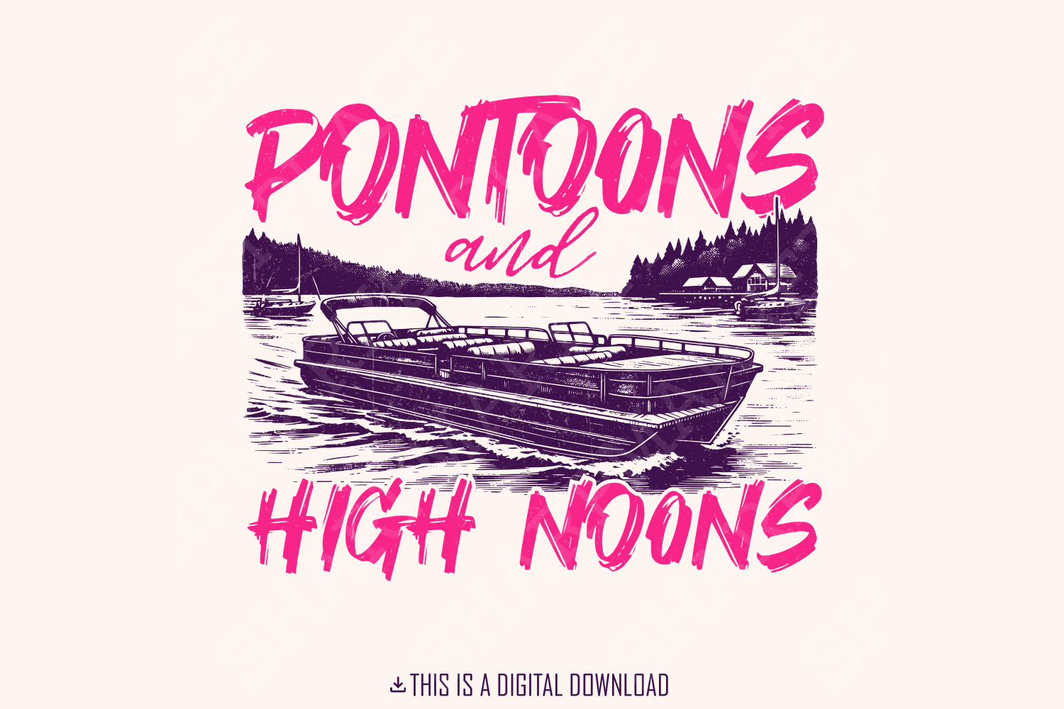 Pontoons and High Noons Retro Vintage Neon Summer Boat PNG, Trendy Beer Seltzer Design, Digital Download