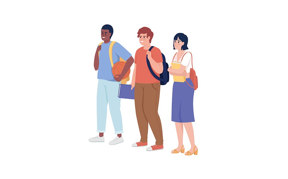 Positive students group semi flat color vector characters. Editable figures. Full body people on white. Education simple cartoon style illustration for web graphic design and animation