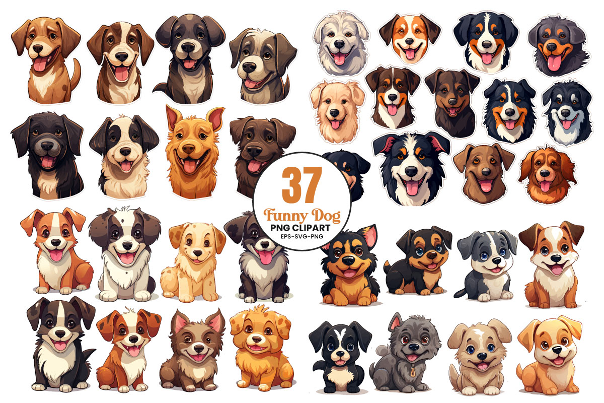 Printable cute pets dog animal png clipart bundle with transparent background and funny dog sublimation sticker clipart cartoon vector Illustration set.