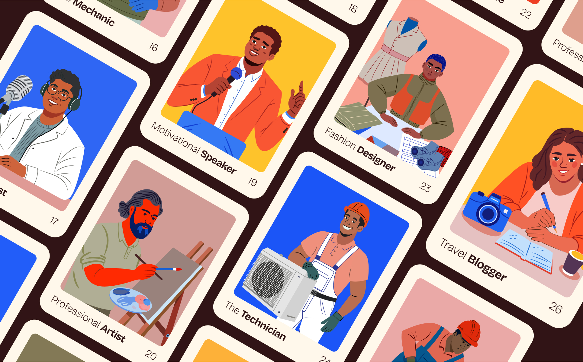 Diverse and inclusive—characters that reflect various industries and professions.