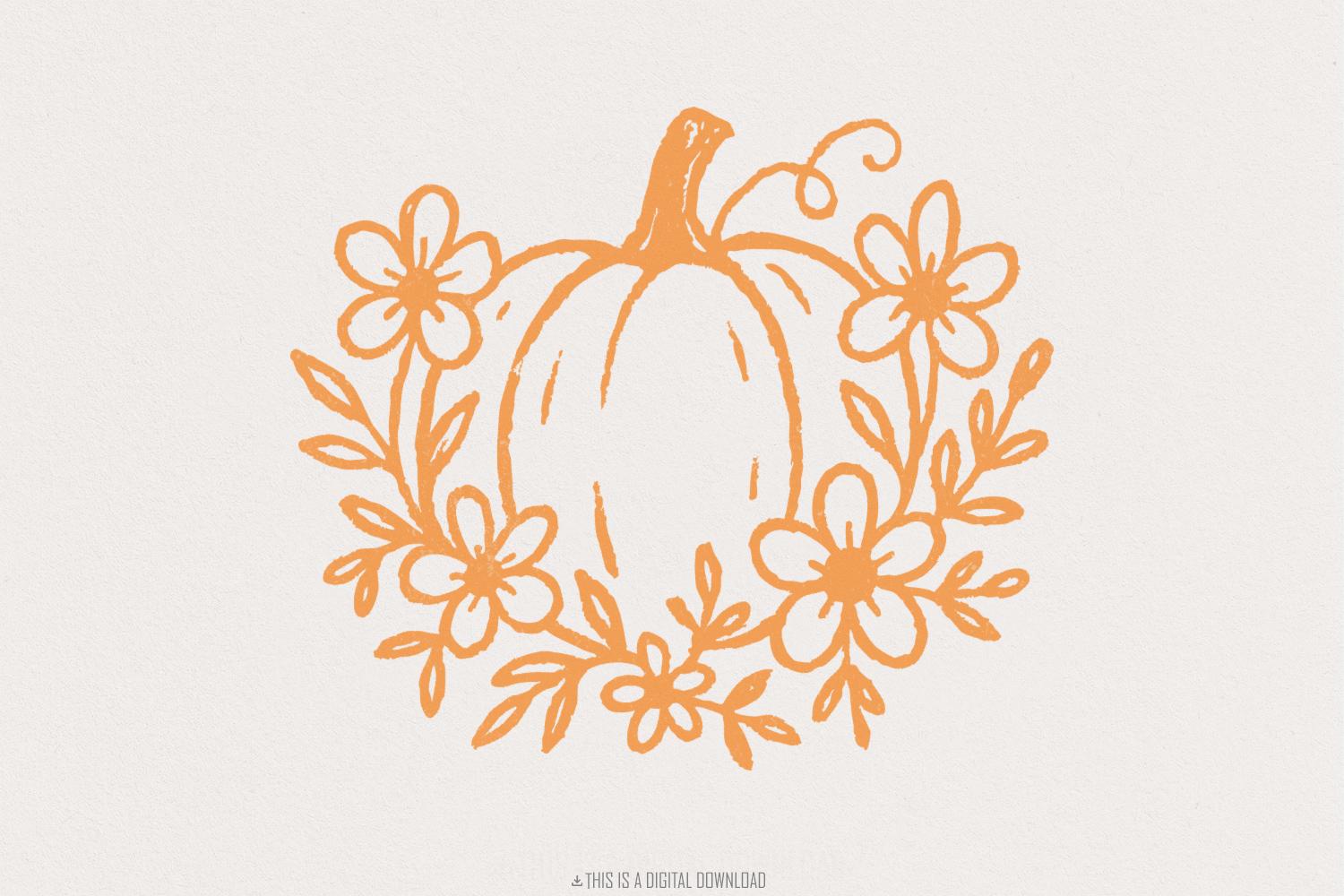 Pumpkin PNG Floral Fall Design, Autumn Digital Download, Pumpkin With Flowers PNG, Thanksgiving Illustration