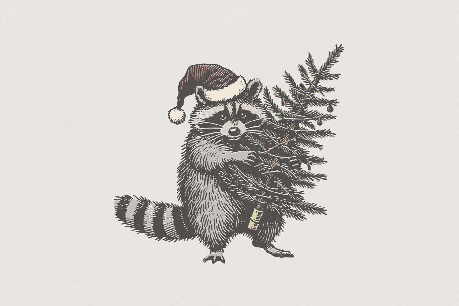 Raccoon Christmas Tree PNG, Santa Hat Holiday Animal, Vintage Style Printable Shirt, Festive Illustration
