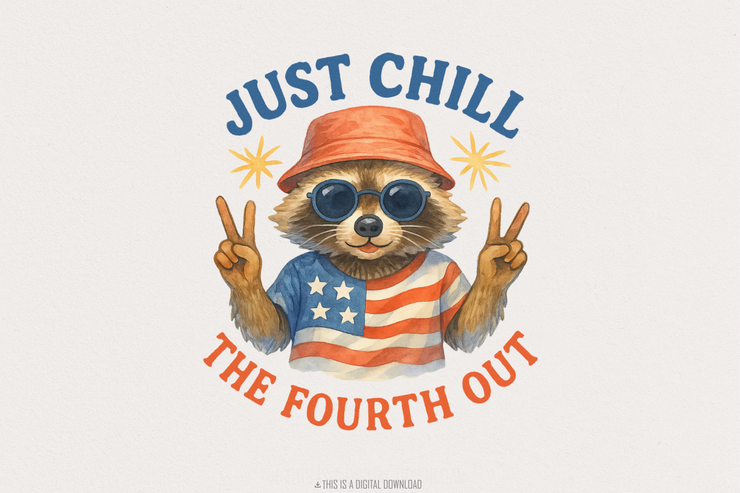 Raccoon Just Chill the Fourth Out PNG, America PNG, Retro 4th of July PNG, USA PNG, Funny Raccoon Illustration