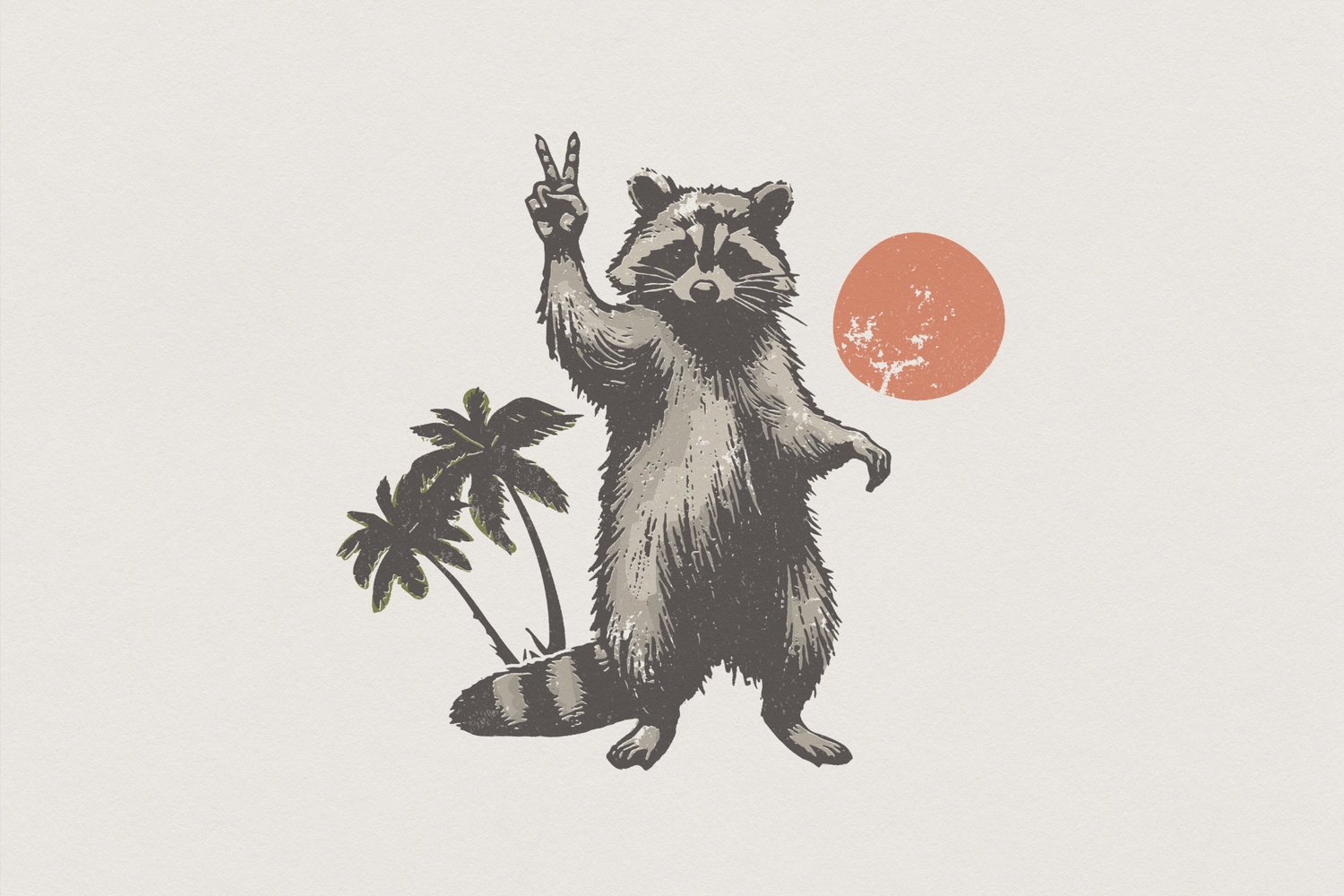 Raccoon Peace Sign PNG, Palm Tree Summer Animal Clipart, Retro Sunset Shirt, Cute Vacation Animal PNG Print, Hipster Woodland Vibes Art