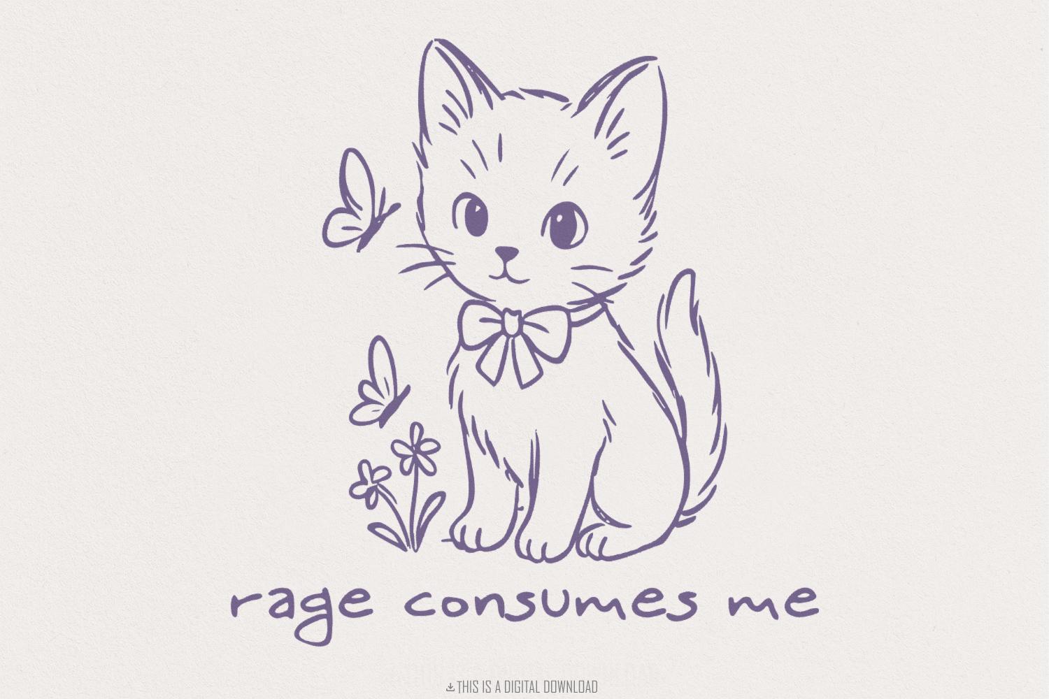 Rage Consumes Me, Funny Cat Art, Vintage Animal Quote, Cute Cat PNG, Retro Print, 1950s Kitten, Cat Illustration