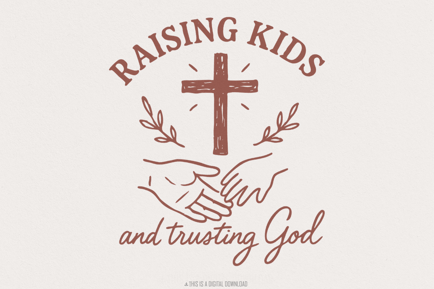 Raising Kids Trusting God Png, Christian Mama Png, Boho Floral Mama, Retro Wildflower Mama Png, Mother's Day, Mom Life Png, Hand Drawn
