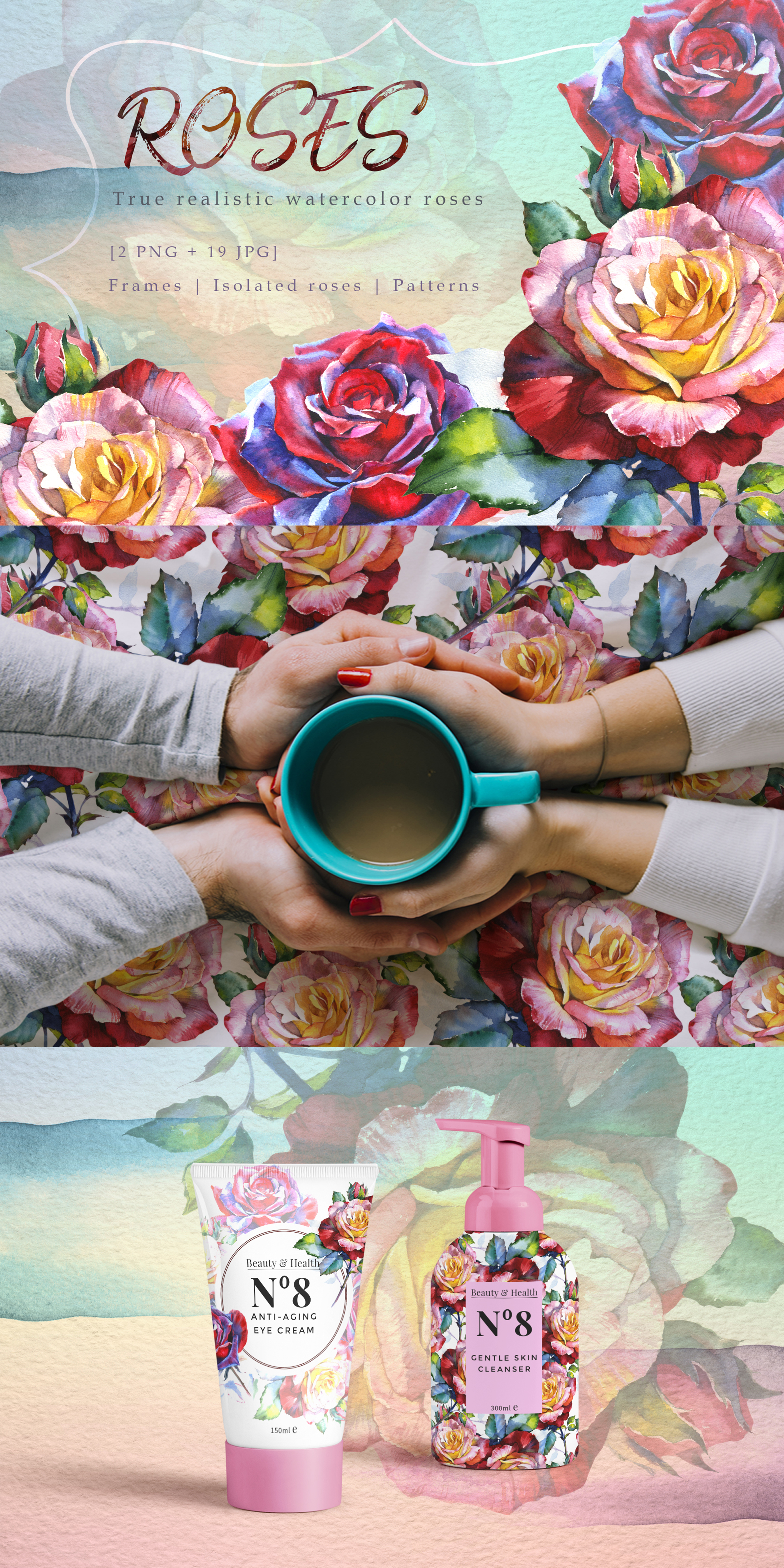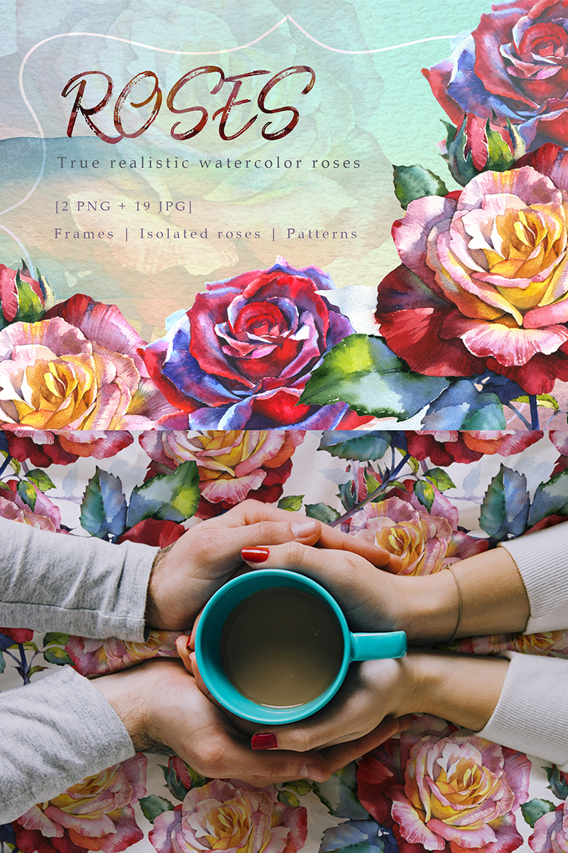 True realistic watercolor red roses flowers watercolor set of 21 files. Ideal material for DIY, wedding invitations, greeting cards, quotes, blogs, posters and more.