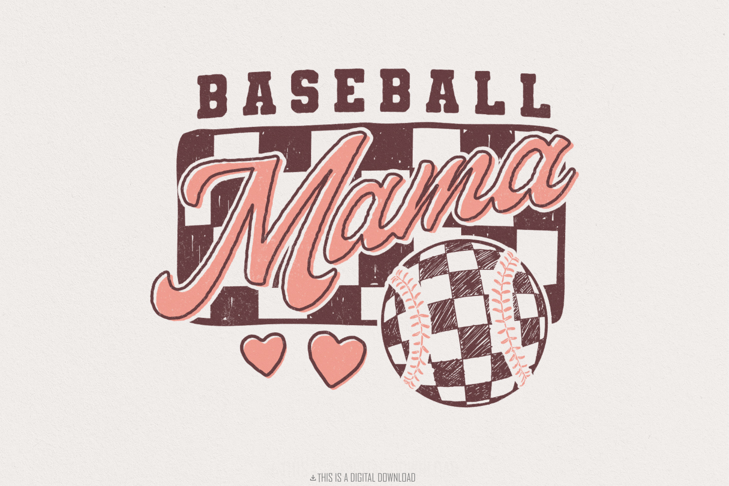 Retro Baseball Mama PNG, Baseball Bow, Baseball Coquette, Checkered Sublimation Design, Brushstroke, Game Day, Digital Download