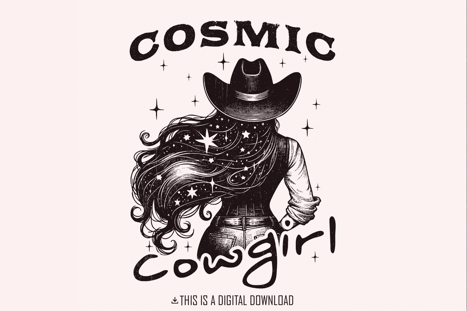 Retro Cosmic Cowgirl PNG, Starry Night Space Cowgirl, Western png, Vintage Bohemian Designs, Trendy Cowboy Western Digital Download