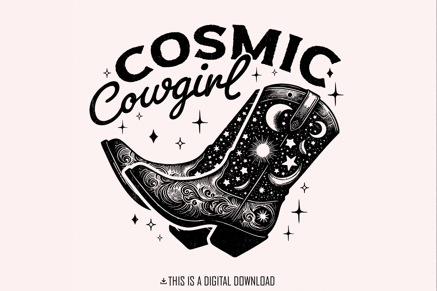 Retro Cosmic Cowgirl PNG, Western Starry Night png, Space Cowgirl Boot Art, Trendy Vintage Western Illustration, for Print