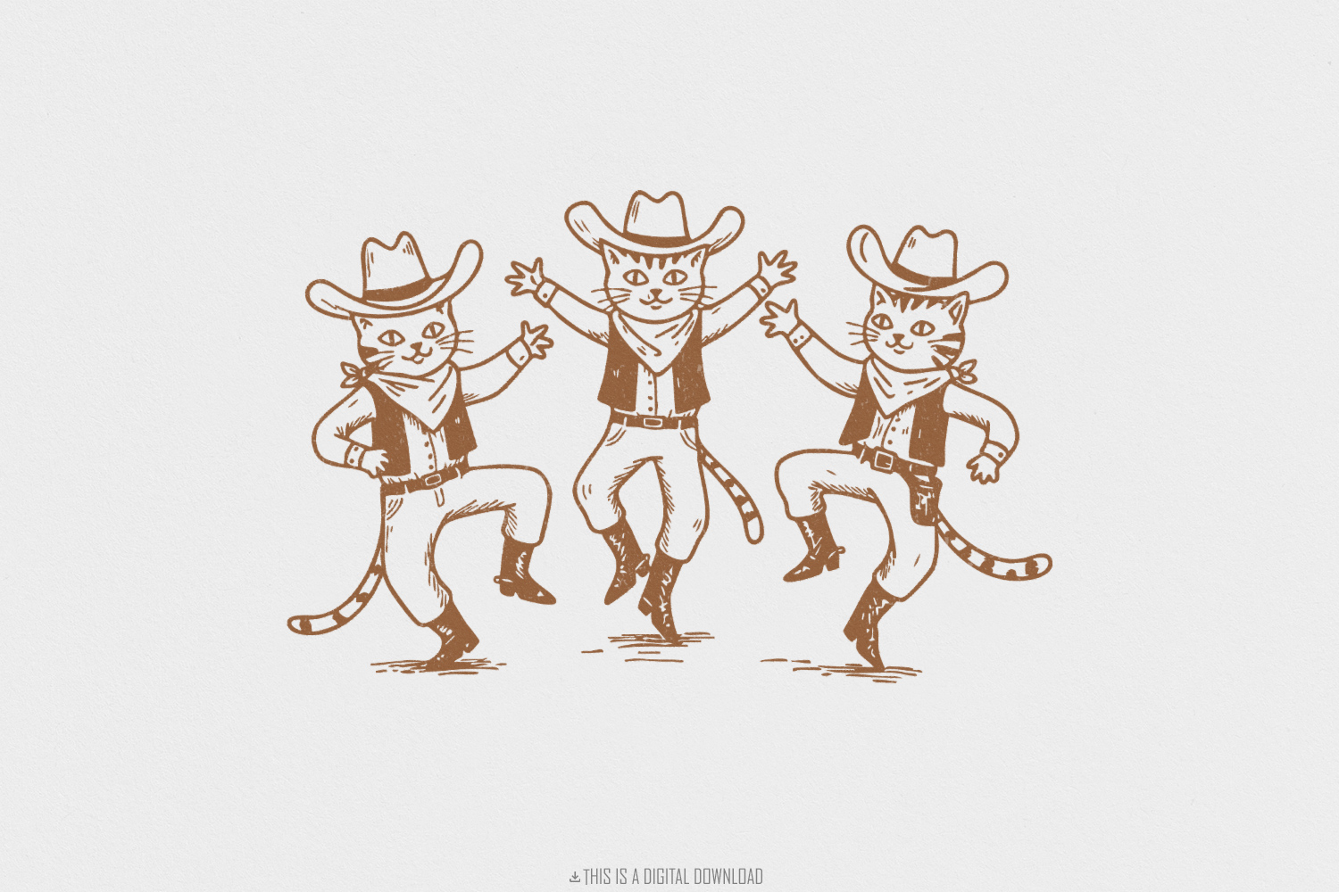 Retro Cowboy Cat Png, Funny Western Art, Vintage Digital Download, Nostalgic Gift, Cute Cat Sublimation Design, Country T-Shirt Graphic