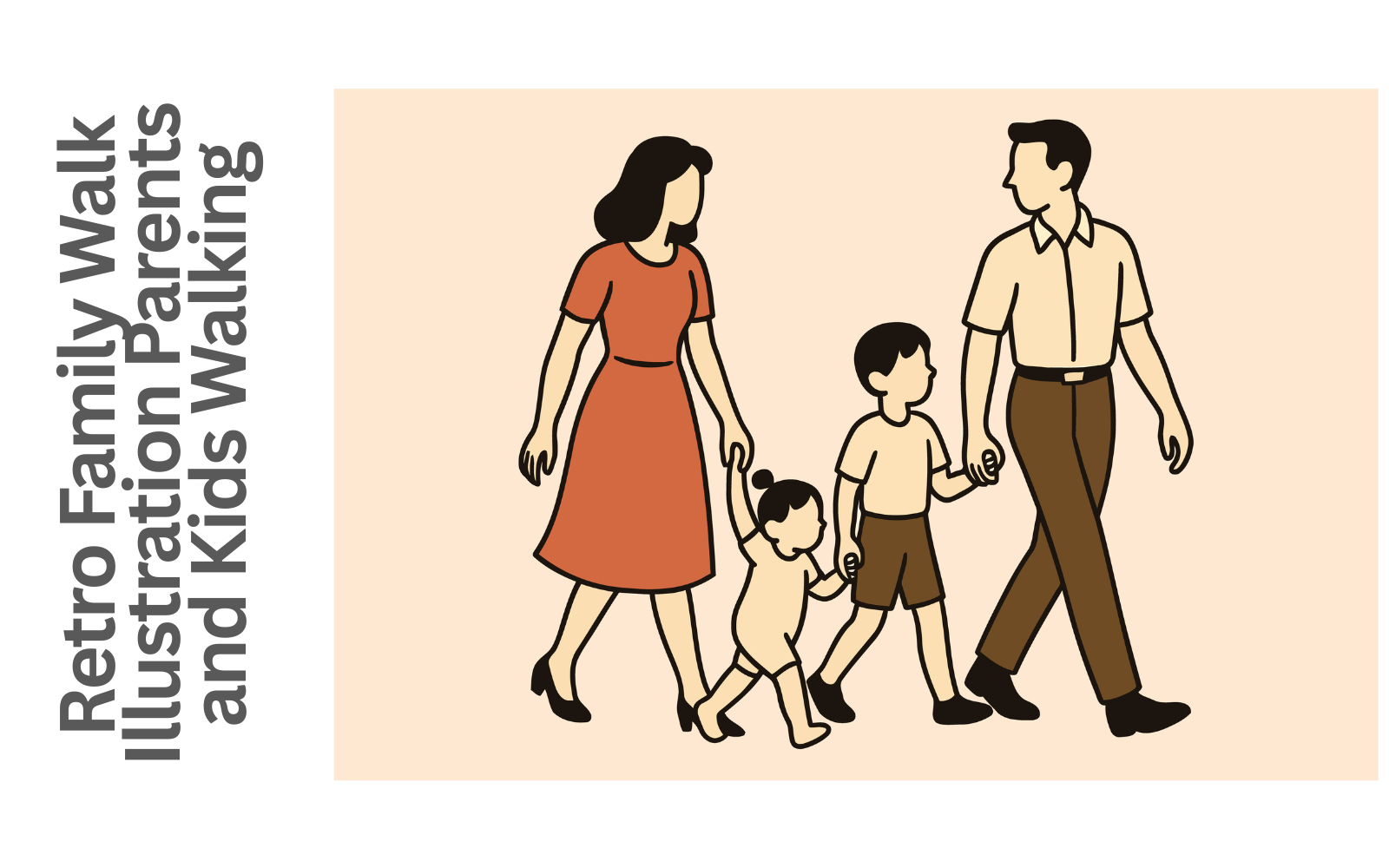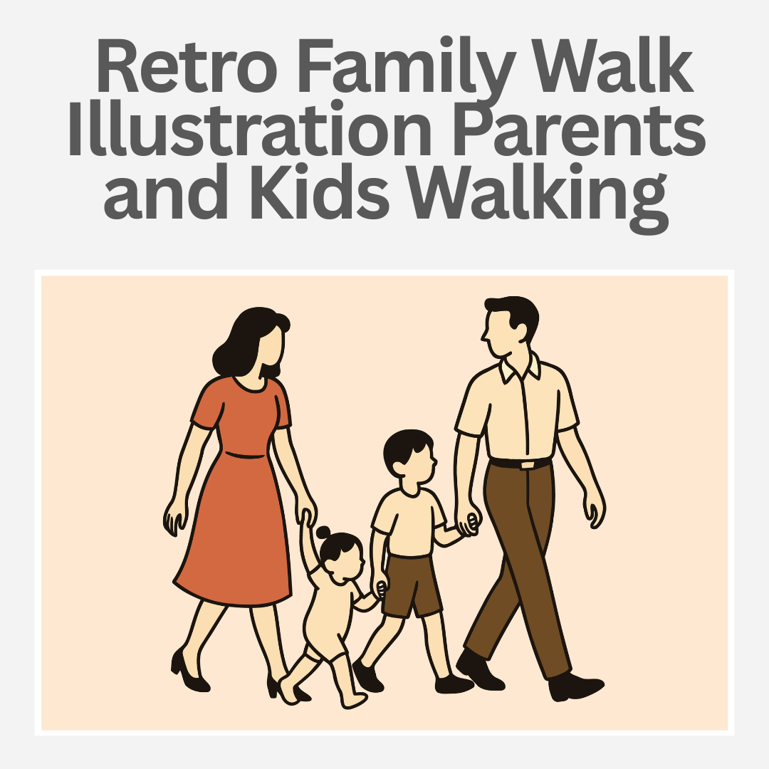 Retro Family Walk Illustration Parents and Kids Walking Together