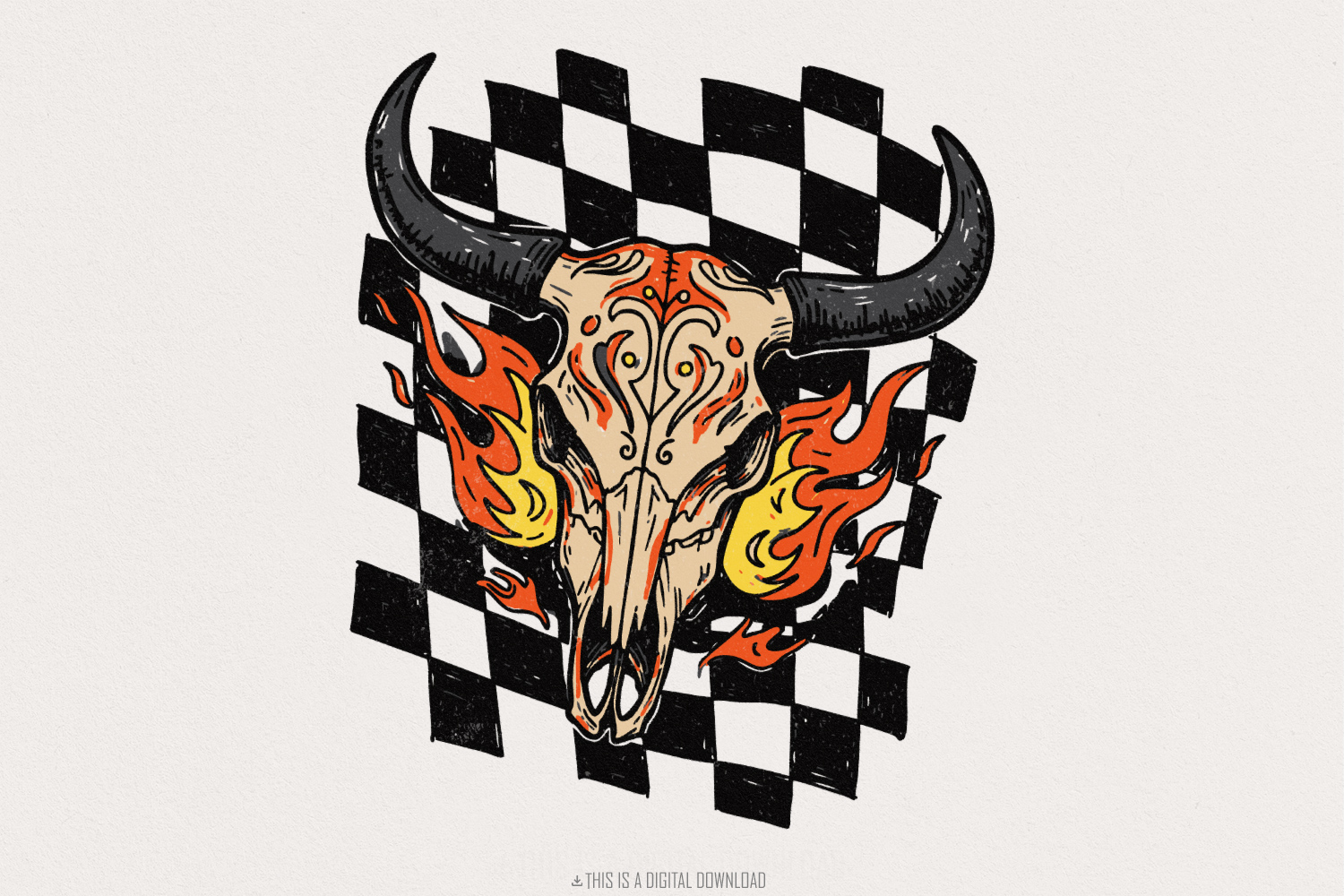 Retro Rodeo Western PNG, Checkered Print Bull, Western PNG File, Instant Download, Shirt Design, Boho Bull Skull, Retro Cow Print Design