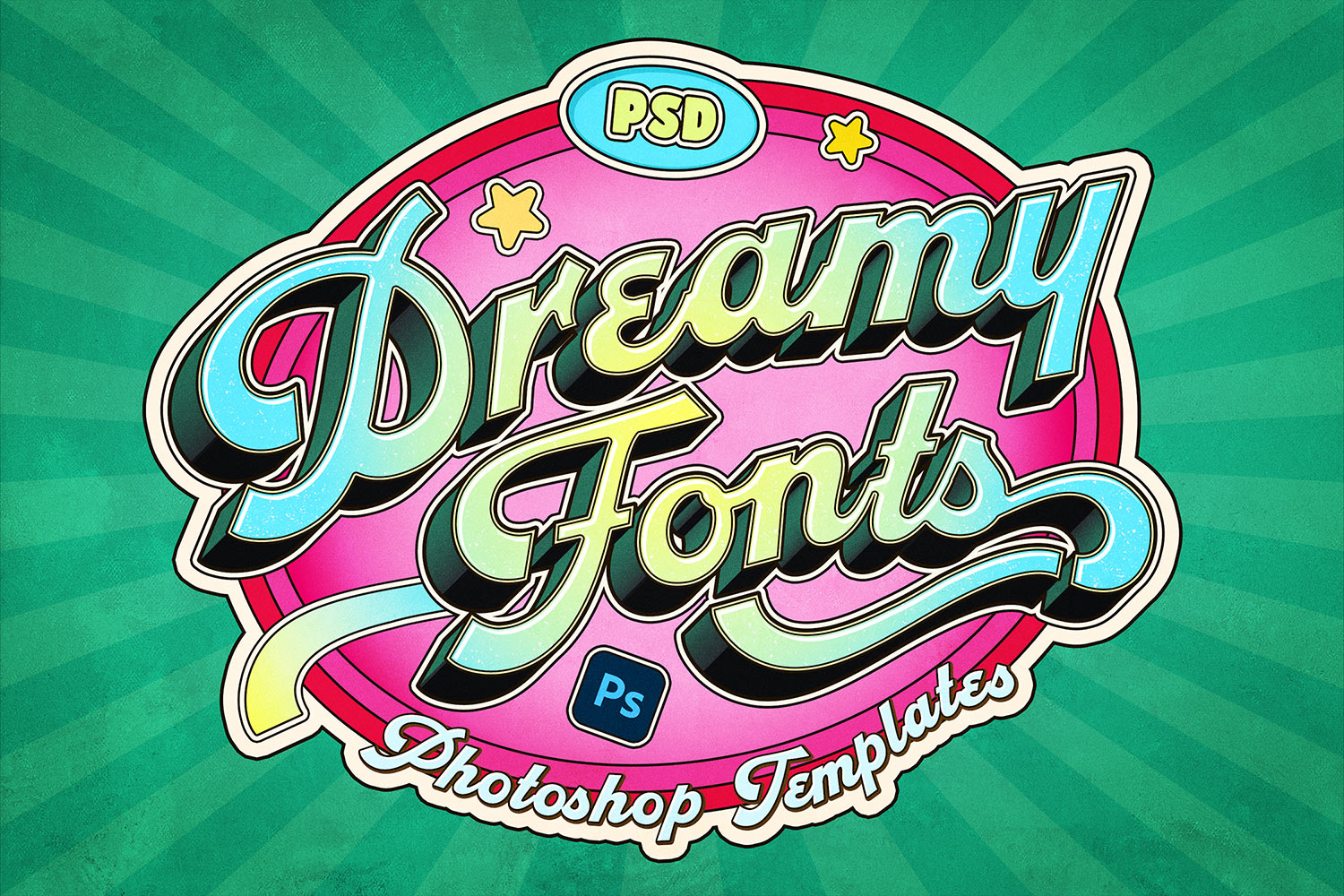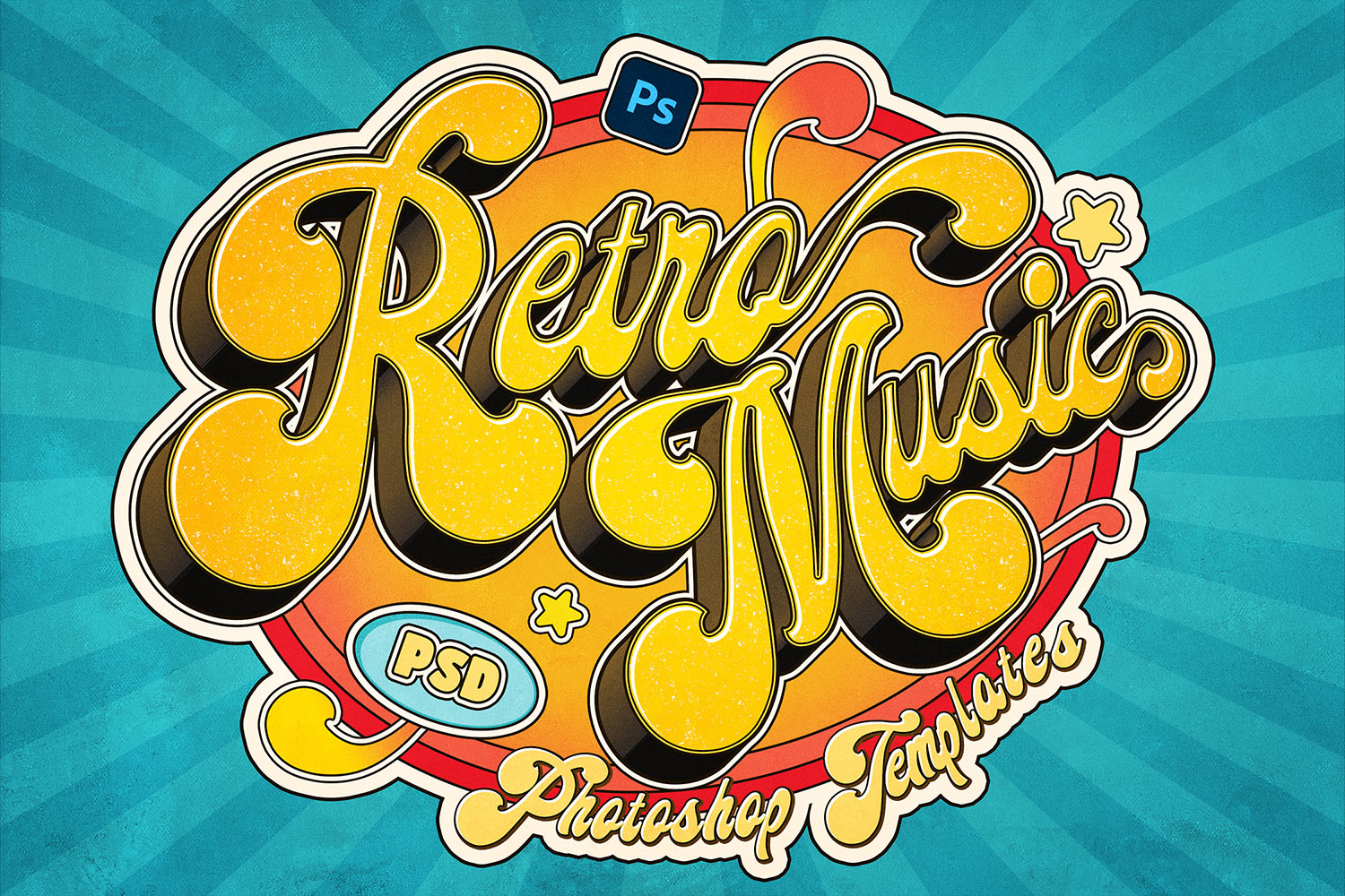 You can use these 6 Photoshop templates for making cool retro lettering for posters, social media, video titles, Instagram, promo, ads and more!