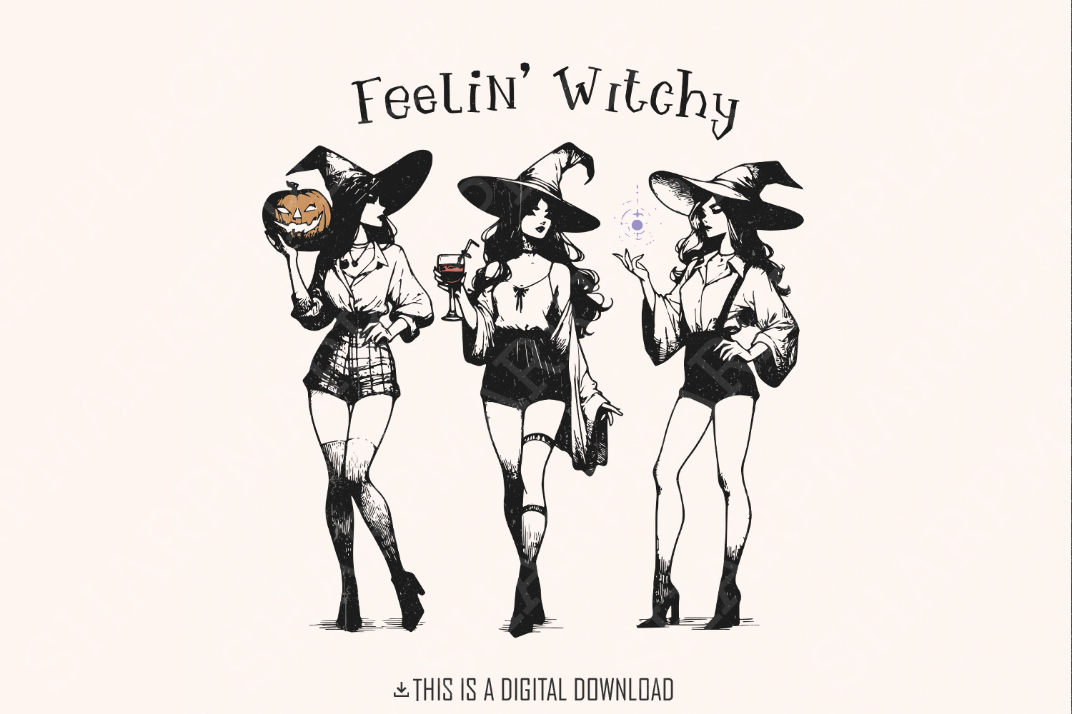 Retro Witch PNG, Halloween Design, Spooky Season PNG, Horror Movie Vintage png, Instant Download, Witchy Woman PNG, Retro Halloween