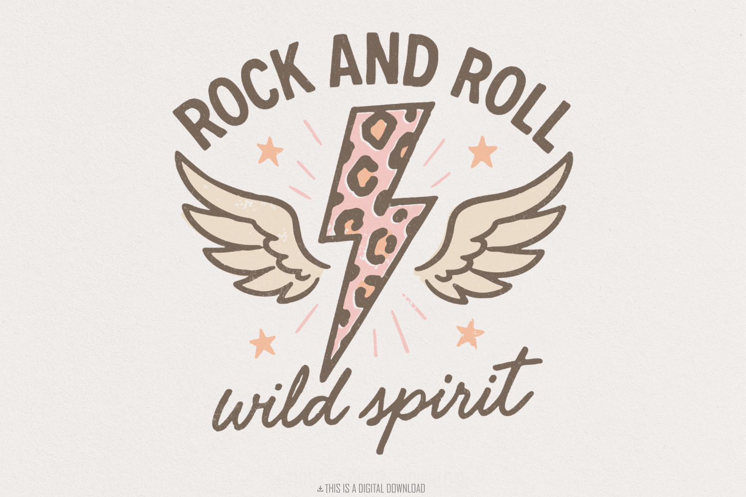 Rock And Roll Wild Spirit PNG, Retro Lightning Bolt Leopard Print PNG, Angel Wings Vintage Aesthetic T-Shirt Design, Digital Download Tee
