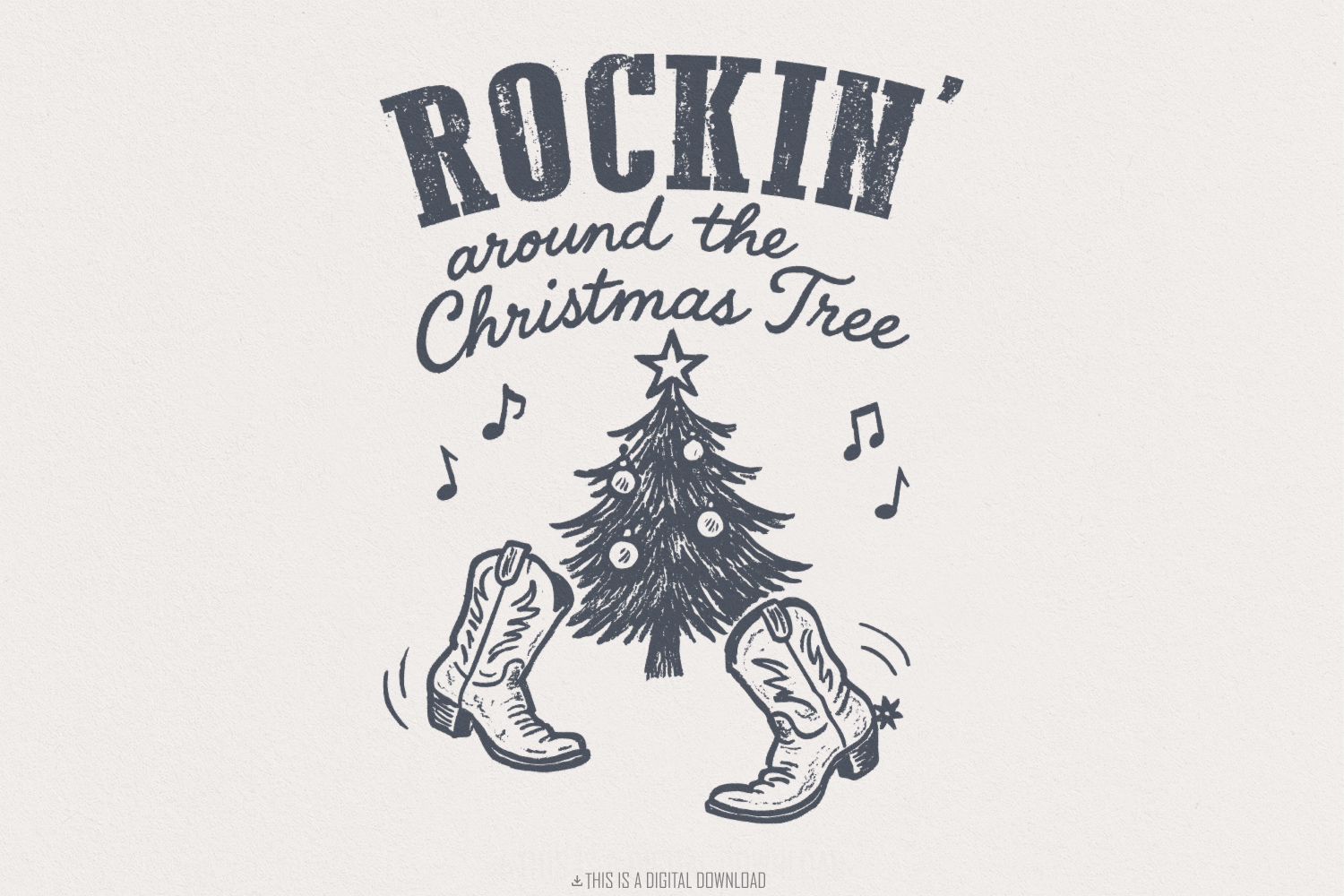 Rockin Around the Christmas Tree PNG, Retro Christmas, Western Holiday Shirt, Country Christmas PNG, Cowboy Boots Art, Instant Download