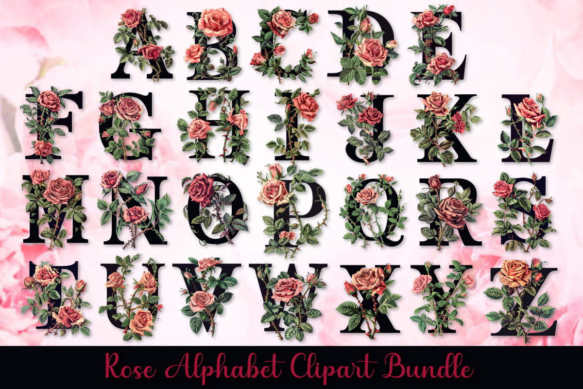 Floral Alphabet A – Z clipart, Floral Letters Png, Watercolor Alphabet png, Rose Png Clipart Rose Font Alphabet Rose Letters Png Doodle Letters Floral Alphabet Clipart Decorative Letters Sublimation Designs.