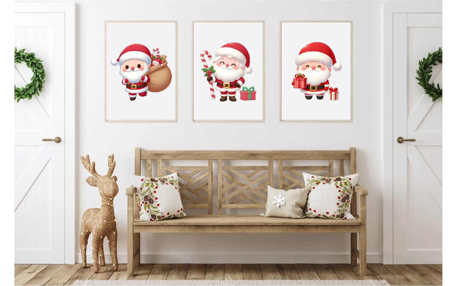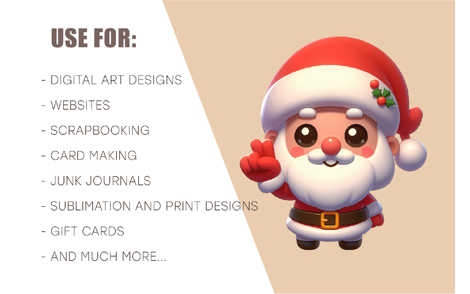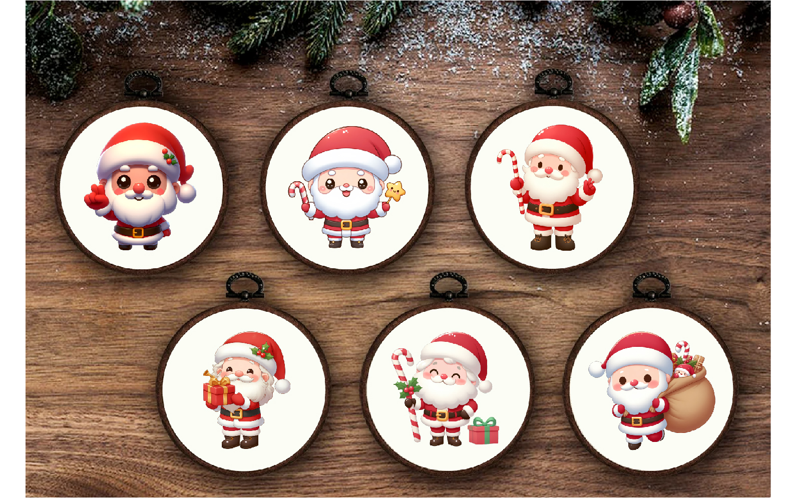 Set of 10 Christmas stickers PNG files with Santa Claus on transparent background. Can be used as stickers, magnets, cut out and turned into decorations, used as a shaped card or decorative element.
