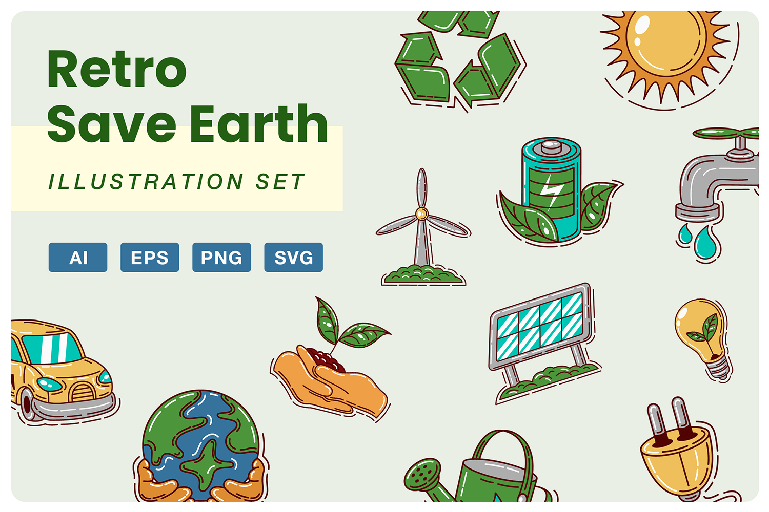 Save Our Earth Retro Illustrations are perfect for website design, mobile apps, presentations, analytical reports, infographics or website templates. It’s available in multiple file formats, easy-to-edit and can be flexibly integrated into your design.