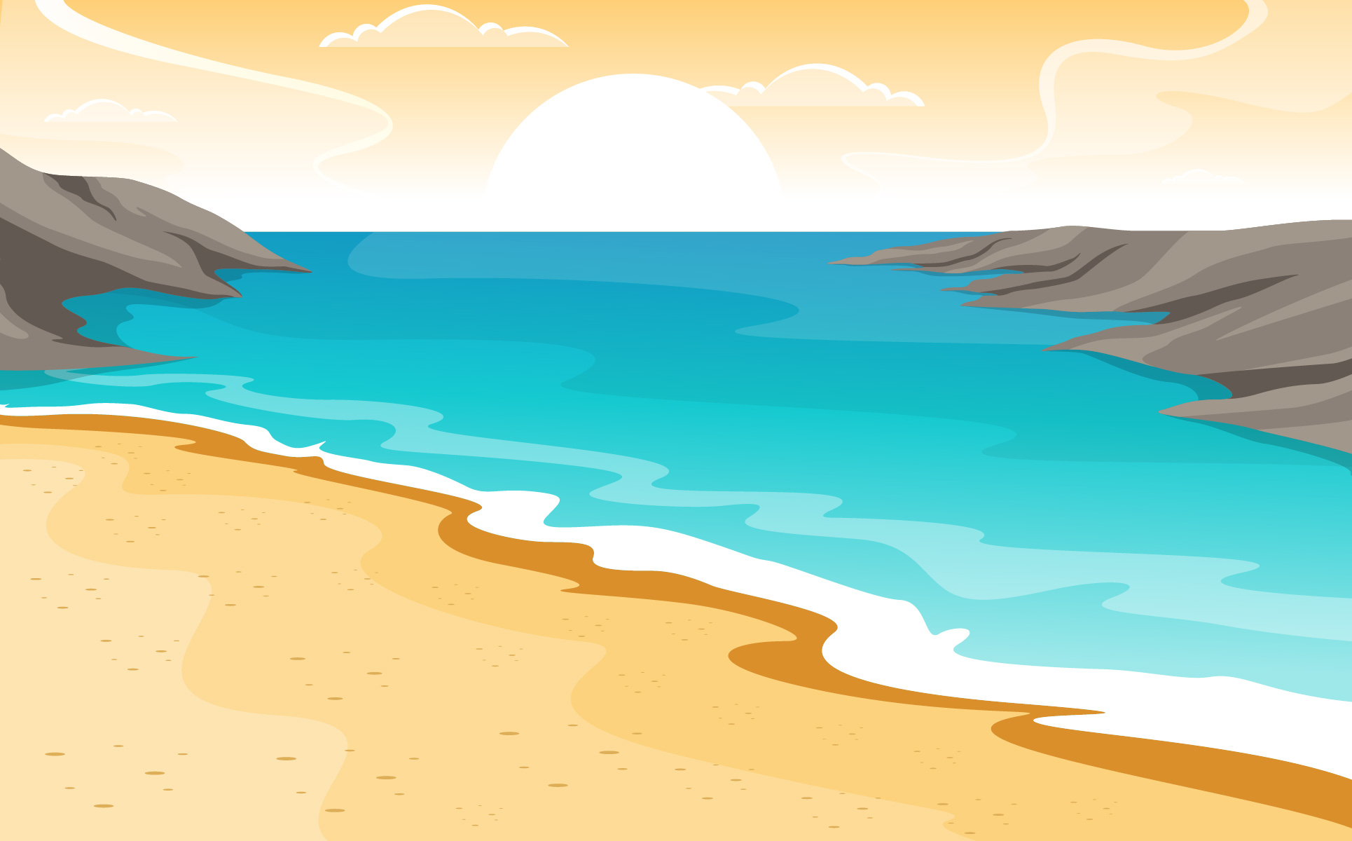 Beautiful Sea Panorama Beach Coast Bay Ocean Landscape Illustration