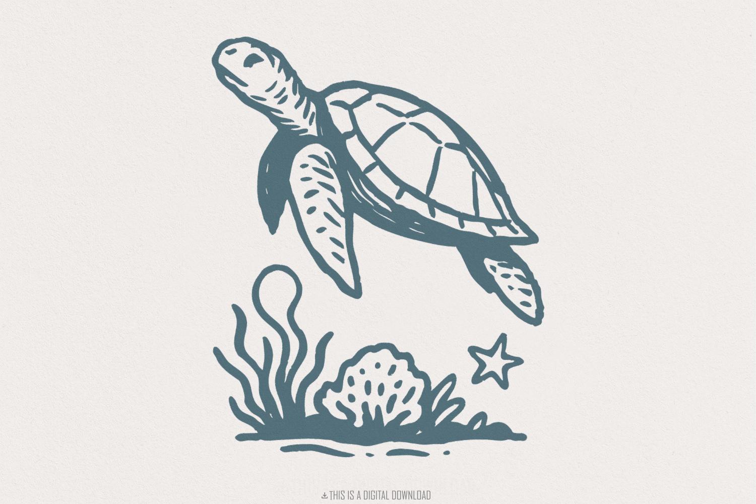 Sea Turtle PNG Clipart, Ocean Animal Illustration, Marine Life Art, Printable Wall Decor,