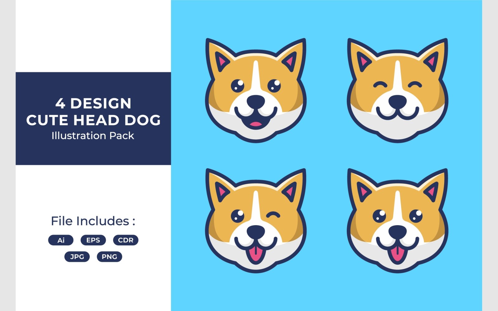 Set Cute Dog Head Flat Illustration