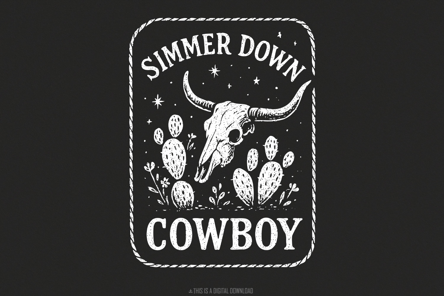 Simmer Down Cowboy PNG, Western Skull PNG, Boho Cactus Sublimation, Rustic Cowboy Digital Download, Illustration