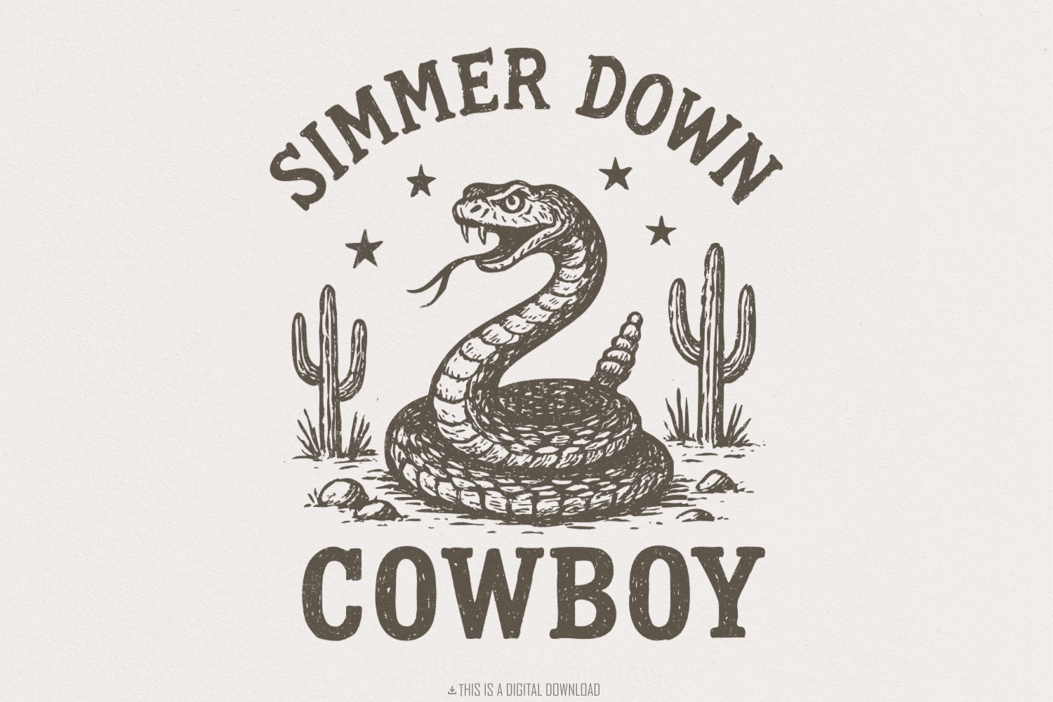 Simmer Down Cowboy PNG, Western Snake PNG Design, Vintage Cowboy Printable Shirt, Desert Western PNG, Country Digital Download Art