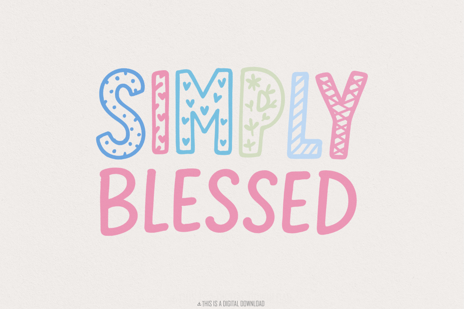 Simply Blessed PNG, Pastel Letter Art, Positive Quote PNG, Digital Download Shirt, Inspirational Gift, Hand Drawn Typography, Sublimation Art