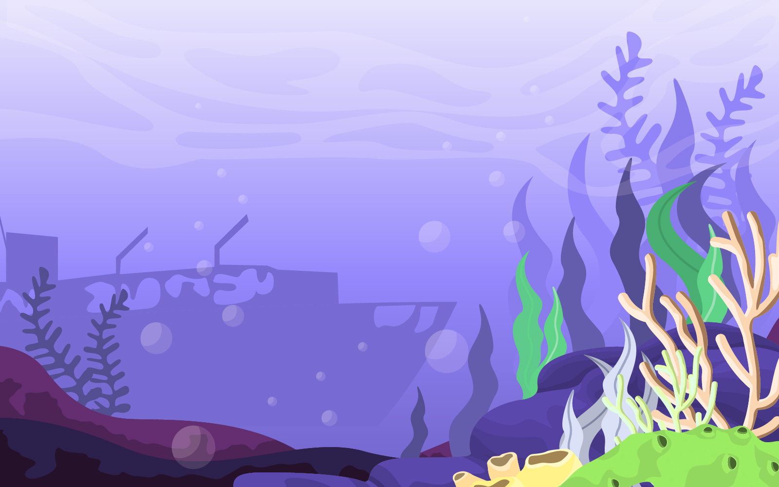 Ancient Sinking Ship Marine Coral Underwater Ocean Nature Illustration