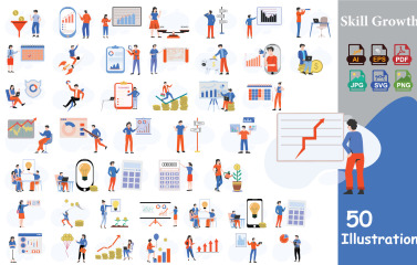 Bring your creative ideas to life with this powerful Skill Growth Illustration Pack — symbolizing progress, innovation, and the journey of success.