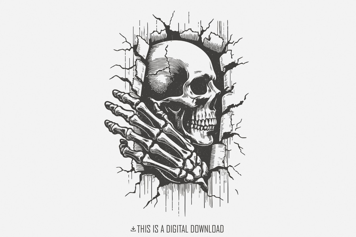 Skull In The Wall PNG, Skeleton png, Digital Product, Instant Download, Skull Clipart, Halloween Illustration
