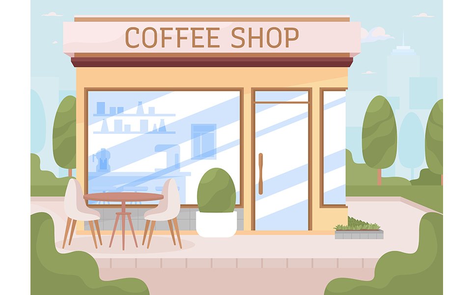 Small coffee shop on city street illustration Illustration