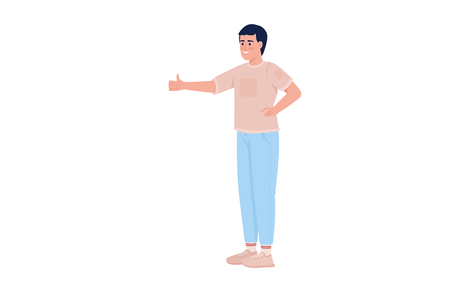 Smiling man semi flat color vector character. Editable figure. Full body person on white. Casual outfit. Body language simple cartoon style illustration for web graphic design and animation