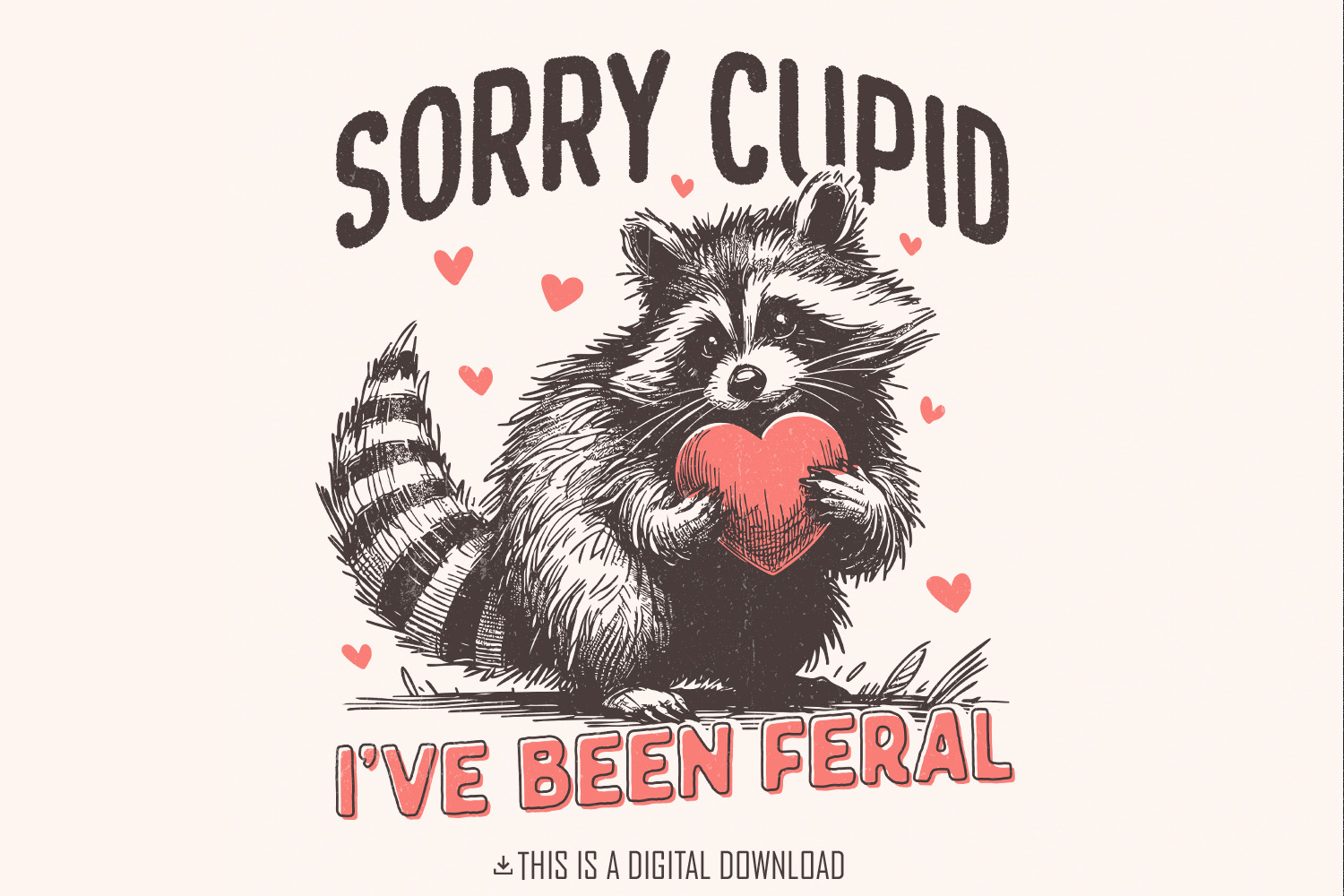 Sorry Cupid I've Been Feral, Funny Raccoon Valentines Day PNG, Retro Valentine PNG, Snarky Raccoon Sarcastic Love, Anti Valentines Day PNG