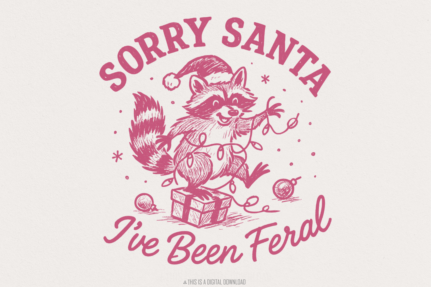 Sorry Santa I’ve Been Feral PNG Christmas Raccoon Funny Holiday Shirt, Cute Digital Download, Illustration