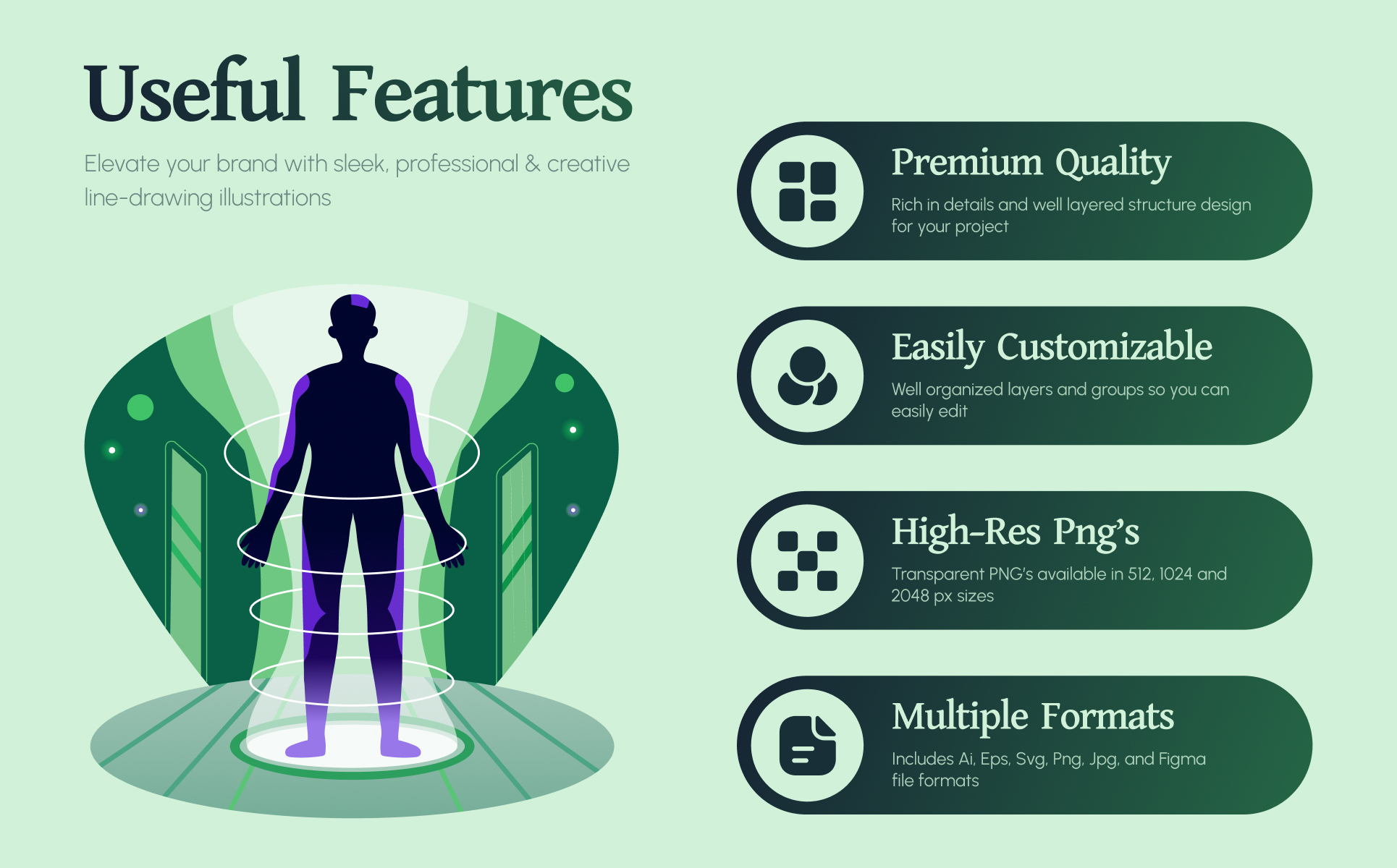 - Multiple formats (AI, EPS, Figma, PNG, SVG) for easy use