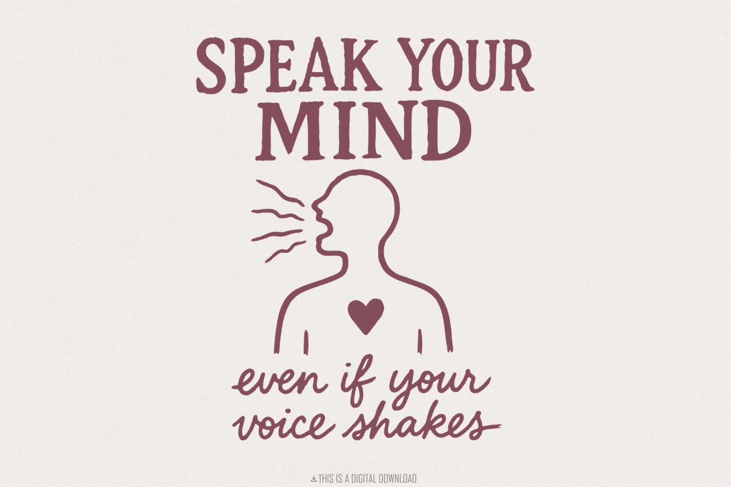 Speak Your Mind Even If Your Voice Shakes PNG, Empowerment Sublimation PNG, Motivational Quote PNG Illustration